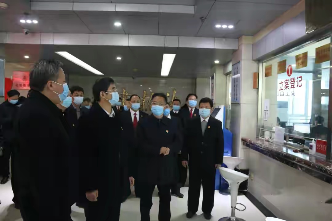 在浉河区法院,谷昌豪参观了诉讼服务大厅,现场查看群众立案查询的实际情况,对法院案件办理流程信息化、人员管理调配等一一进行了解并提出意见建议。他强调,要提高审判执行质效,将智能化、信息化与审判执行工作更好地融合,切实破解执行难问题。