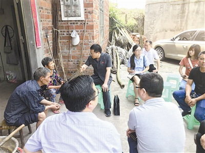 图为最高法五巡法官到罗老汉家进行实地调查。王迪摄