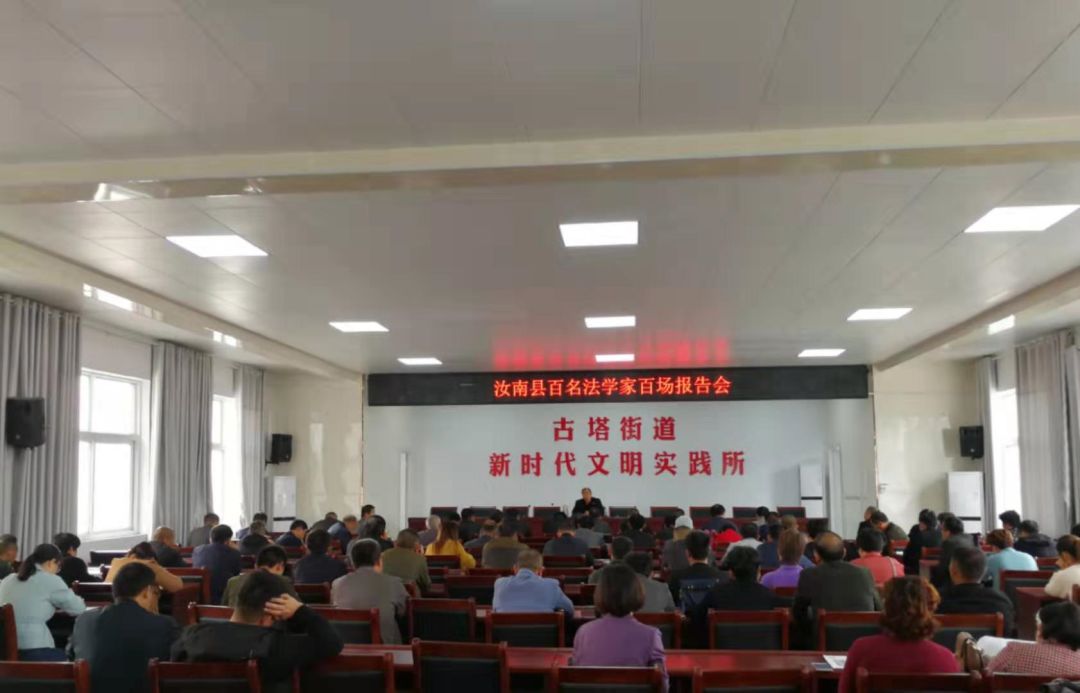 10月23日,汝南县司法局、县法学会、县普法办在古塔街道办事处举行“汝南县百名法学家百场报告会”,特邀资深律师李参军向街道办领导干部、机关工作人员及村两委成员讲解了宪法、民法总则、人民调解法等法律法规知识。会后,汝南县普法志愿者向参会人员发放了宪法、汝南县司法局给全县人民的一封信、法律知识读本等法治宣传资料,既提高了古塔街道及村两委成员的法律素养,又提升了政法机关的满意度,也为法治政府建设奠定了坚实的基础。