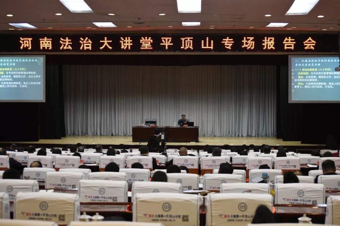 11月4日下午,河南法治大讲堂平顶山专场暨市委理论学习中心组集中学习会议召开。中国法学会行政法学研究会副会长、西北政法大学教授王周户以“从深入推进依法行政到加快建设法治政府——深化依法治国实践”为题为与会人员作法治专题辅导报告。