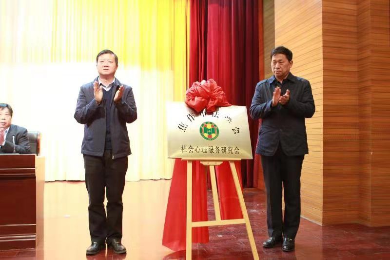 市委政法委副调研员刘臣才宣读同意成立焦作市法学会社会心理服务研究会的批复;与会代表审议通过了《焦作市法学会社会心理服务研究会章程》和《焦作市法学会社会心理服务研究会第一届理事会选举办法》;焦作师专学生工作处处长、心理健康教育与咨询中心主任李敏,对社会心理服务研究会的筹备情况及第一届理事会、常务理事会组成情况进行了说明;会议选举产生了研究会会长1名,副会长13名,秘书长1名,副秘书长7名,常务理事34名,理事78名;焦作师专校党委书记刘新顺和市委政法委副调研员刘臣才为焦作市法学会社会心理服务研究会揭牌。