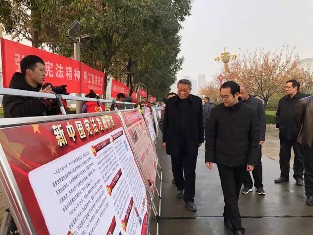 今年是新中国成立70周年,为学习贯彻党的十九大和十九届二中、三中、四中全会精神,推动全市集中深入学习宣传宪法,驻马店市在全市范围内组织开展以“弘扬宪法精神,推进国家治理体系和治理能力现代化”为主题的系列宣传活动,12月1日上午,驻马店市普法办、市司法局、市法学会组织市直各单位在天中广场举办“宪法宣传周”主场集中宣传活动。市委政法委书记孙巍峰、市人大常委会副主任栗明伦、驻马店市副市长、公安局局长郭渊、市政协副主席王秋霞等市领导在市司法局局长张卫东的陪同下对集中宣传活动现场进行指导。
