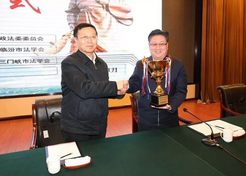 会议最后,举行了本次论坛坛杯的交接仪式,运城市法学会会长侯伟建把坛杯交给临汾市委政法委常务副书记张东红。张东红表示,运城这次论坛的成功举办,为临汾提供了一个高标准的参考,临汾将吸取三门峡、渭南、运城举办论坛的先进经验,将在山西省法学会的指导下,争取圆满办好明年的“晋陕豫黄河金三角区域法治论坛”。