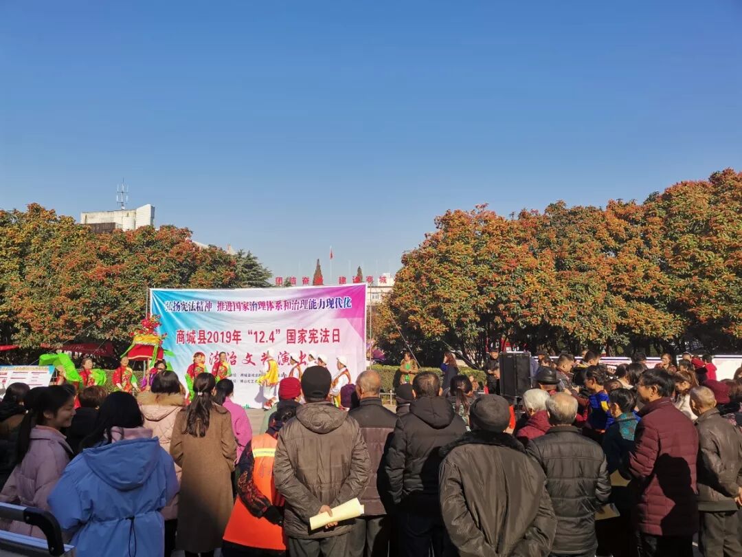 12月4日,商城县法学会联合县司法局在政府广场开展第六个“国家宪法日”宣传活动,30个余县直单位布置展板、7个执法部门设置普法服务点,为群众提供咨询,商城县2019年“12.4”国家宪法日法治文艺演出的快板、大鼓书、红歌接连上演,让现场群众沉浸在浓厚的法治氛围中。