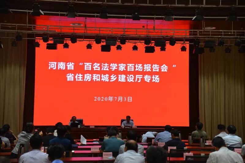 7月3日上午,河南省“百名法学家百场报告会”省住房和城乡建设厅专场开讲。郑州大学法学院博士生导师、河南省法学会民法学研究会会长田土城教授作《我国民法典的创新与特色》专题辅导报告。厅党组书记、厅长赵庚辰同志主持报告会,厅领导、厅机关副处级以上干部和厅属单位班子成员参加。