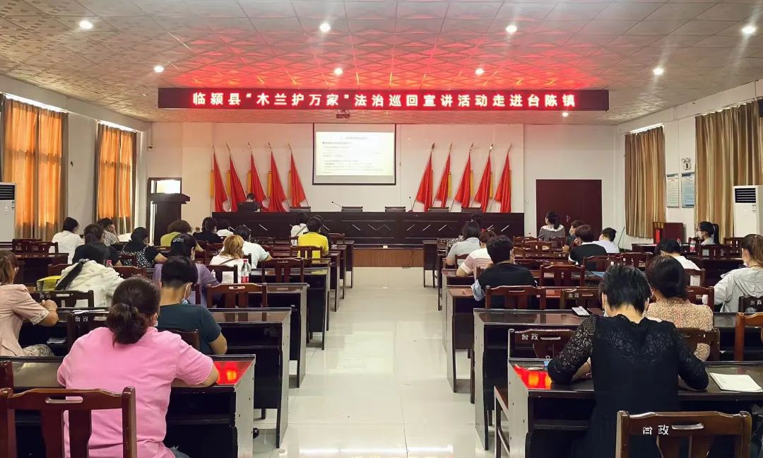 近日,临颍县组织青年普法志愿者到台陈镇开展“木兰护万家”法治巡回宣讲活动,为该镇40余名妇女群众带来了一堂生动的法治课。