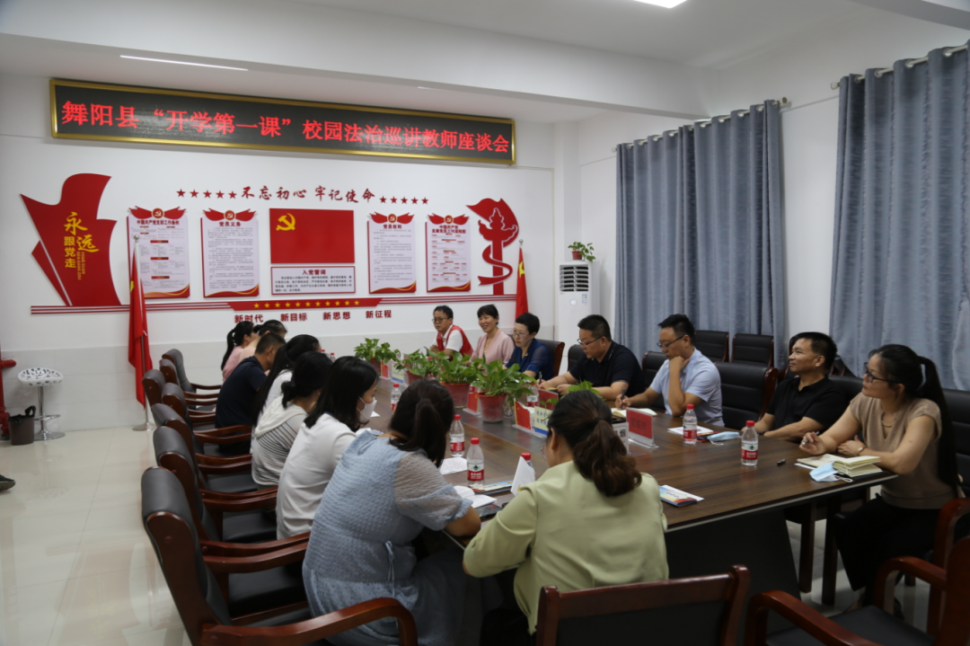 9月14日,舞阳县法学会组织“沙澧法治使者”志愿者在第五实验小学联合开展“开学第一课”校园法治巡讲活动。