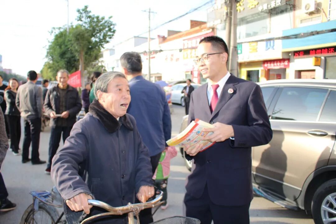 活动恰逢泼陂河镇集市,现场普法气氛活跃,各位普法志愿者通过以案释法、悬挂横幅、发放宣传彩页、宣传围裙、手提袋及调查问卷等多种方式,向附近居民及参与过往群众进行法治宣传,并热心解答群众遇到的法律难题。同时组织“两率”提升宣传警车在街道开展巡逻,并播放“两率”宣传音频,号召全体干部、群众在“爱光山、加油干、奔小康”的浓厚氛围中为光山点赞!为光山代言!做幸福光山人!
