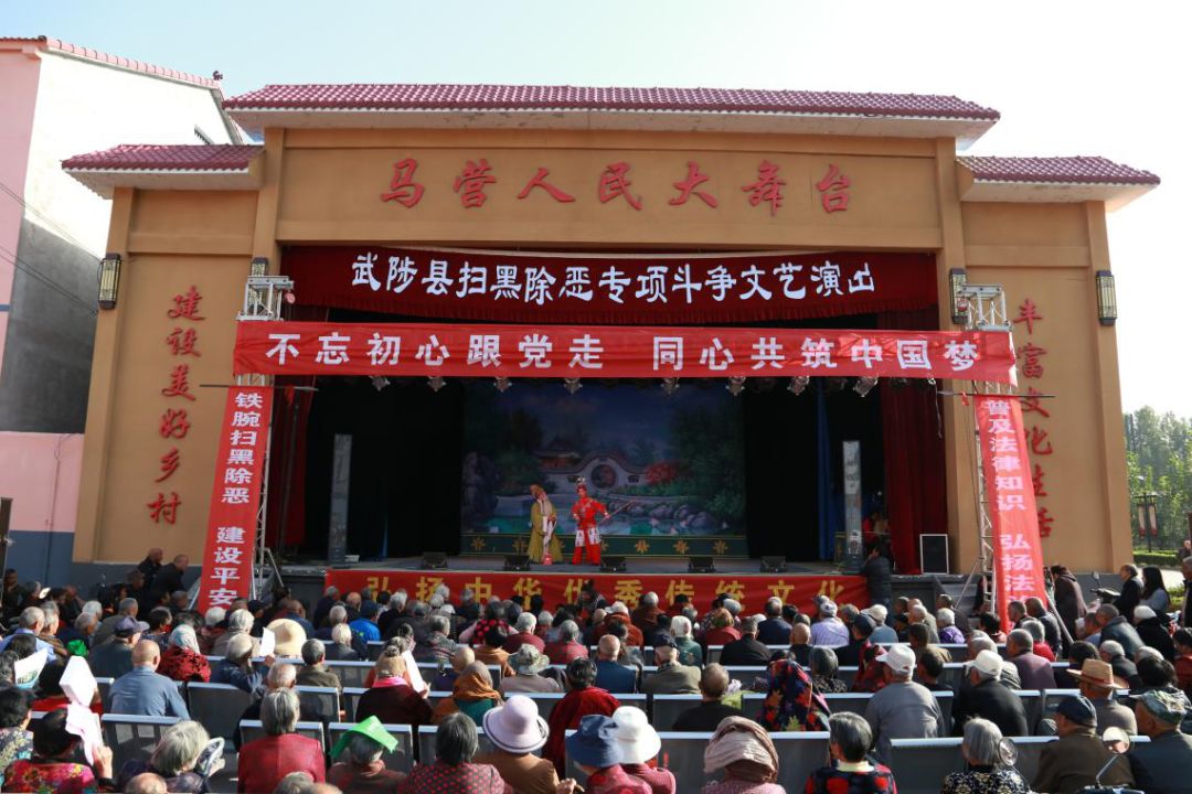 为扎实开展青年普法志愿者法治文化基层行活动,进一步营造扫黑除恶浓厚氛围。10月29日,武陟县委政法委、县法学会、县扫黑办联合在詹店镇马营村举办法治宣传活动。活动现场,戏曲演员表演了《邪不压正》《扫黑除恶得民心》等扫黑除恶内容的戏剧节目,演出精彩纷呈,台下观众掌声不断。普法志愿者还通过发放宣传页和普法宣传品、开展有奖知识问答等方式进行集中法治宣传。