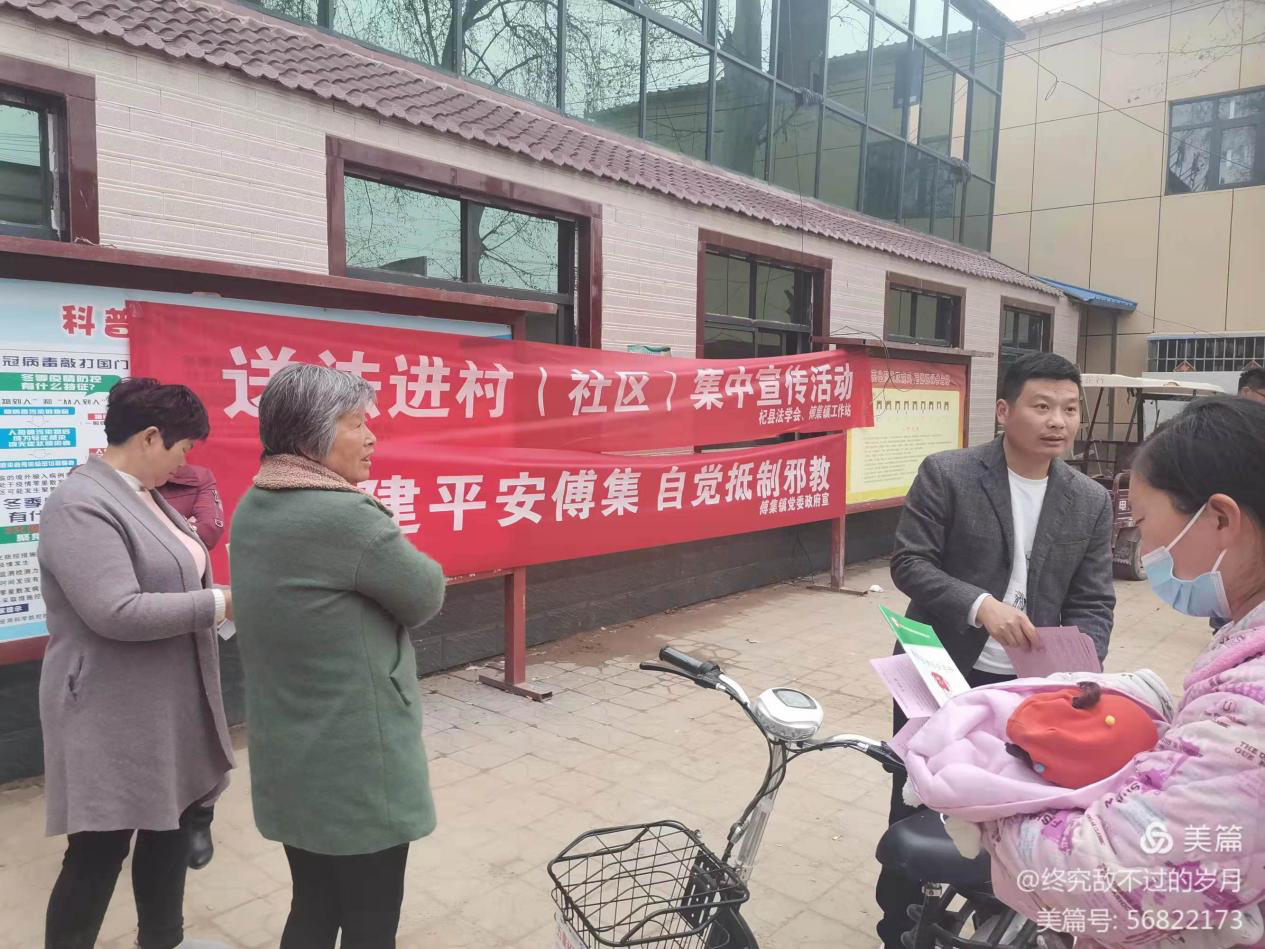 活动中,普法志愿者运用典型案例,重点讲解了宪法、婚姻法、继承法、农村土地承包法等与广大群众日常生产生活密切相关的法律法规知识。广大村民深刻认识到在全面依法治国已步入快车道、中国特色社会主义进入新时代的背景下尊法学法守法用法的必要性、紧迫性和重要性,很受教育和启发,期间还进行了反邪教宣传,工作人员还向群众讲解了什么是邪教,怎么区分邪教并向群众说明邪教的危害。