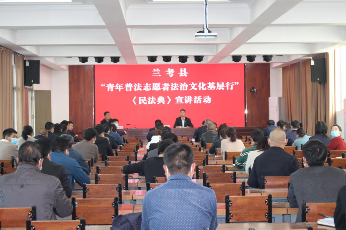 为全面推进《民法典》学习宣传,助力乡镇调解工作,切实保障人民群众合法权益,10月29日下午,兰考县法学会组织普法宣讲团深入东坝头镇政府开展《民法典》宣讲活动,活动邀请县人大常委会委员、法工委主任陈东启作专题宣讲,东坝头镇政府全体党员干部、镇村调解员等共计100余人参加本次活动。