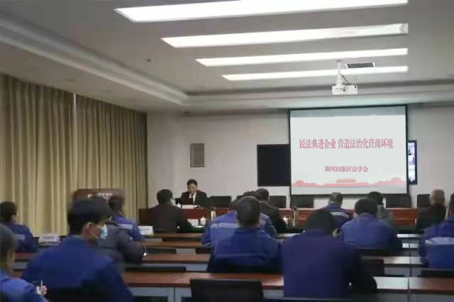 顺河回族区法院党组成员、副院长、法学会理事孙志伟向企业管理干部讲解了《民法典》的相关内容,如《民法典》施行的重大意义、与群众生活的密切联系等,并结合“见义勇为免责”“高空抛物”“个人信息保护”等具体典型案例进行了深入讲解,重点从人事管理、合同签订、风险管控等方面,引导大家增强法律意识,依法规范管理企业。他还详细解答了企业员工关心的法律问题。