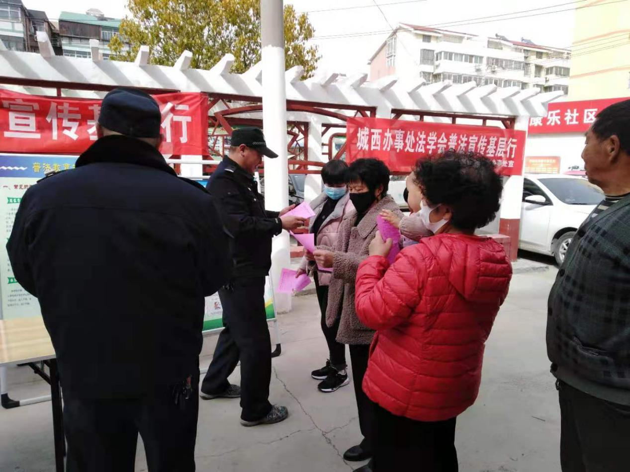 开封市示范区法学会城西工作站和城西街道专职巡防队、社区人员,在辖区内人群密集小广场开展青年普法志愿者法治文化基层行活动,青年普法志愿者向居民进行普法宣传、讲解法律常识,为群众答疑解惑,引导居民守法懂法,大力倡导“有法可依,有法必依,执法必严,违法必纠”,坚决抵制违法行为,积极乐观生活,共同维护社会治安。