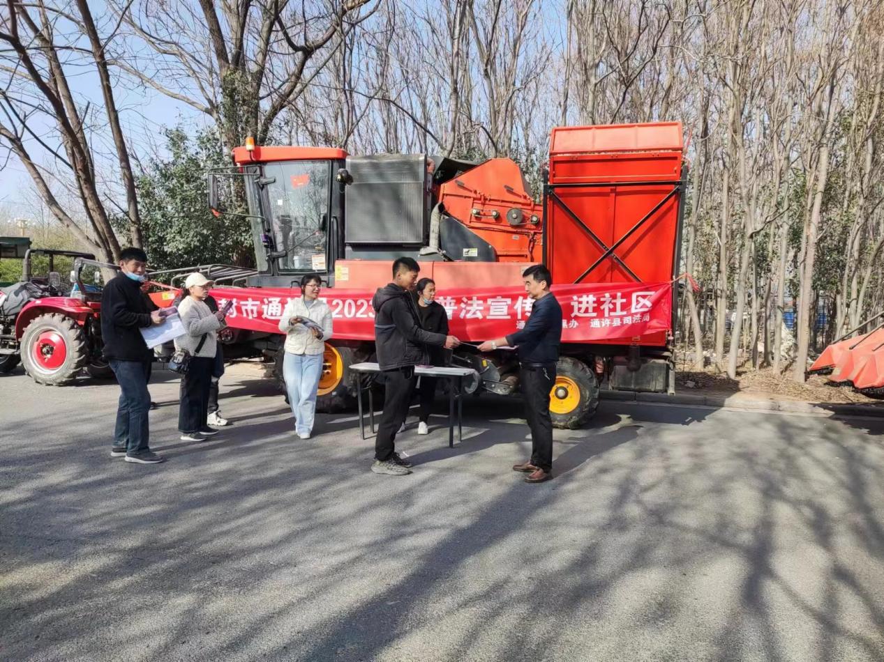 为进一步提高群众的法治观念和维权意识,真正让法治思想融入群众生活之中,满足人民群众多元化的法治需求,3月17日上午,通许县司法局法学会工作站联合县农机局开展普法进社区宣传活动。