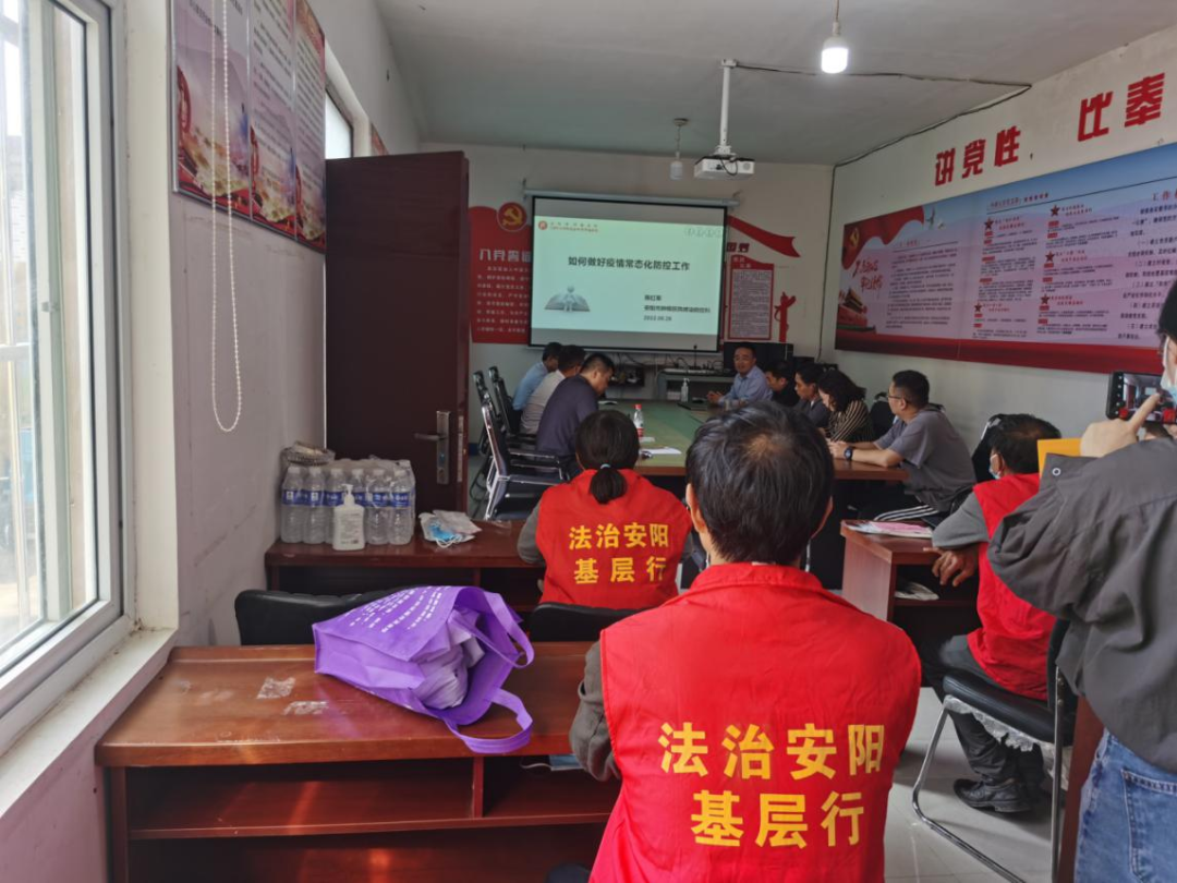 8月31日,安阳市法学会邀请安阳市肿瘤医院感染防控科副科长陈红军和青年普法志愿者深入到安阳县东邵科村举办常态化疫情防控知识讲座。