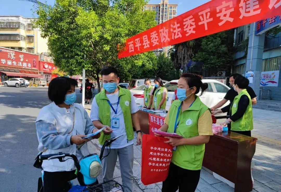 9月5日,西平县委政法委、县法学会开展平安建设宣传活动。