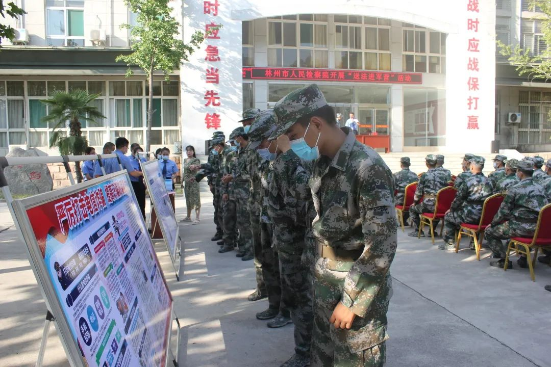 9月16日,林州市法学会组织青年普法志愿者到市人民武装部开展“送法进军营”活动。法学会会员、市人民检察院党组成员、政治部主任王用山,法学会会员、党组成员王国栋等参加了活动。