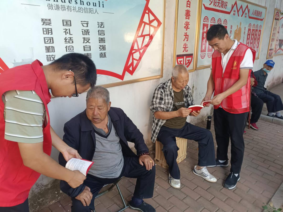 9月26日,信阳市青年普法志愿者在商城县邱湾乡开展青年普法志愿者法治文化基层行活动。