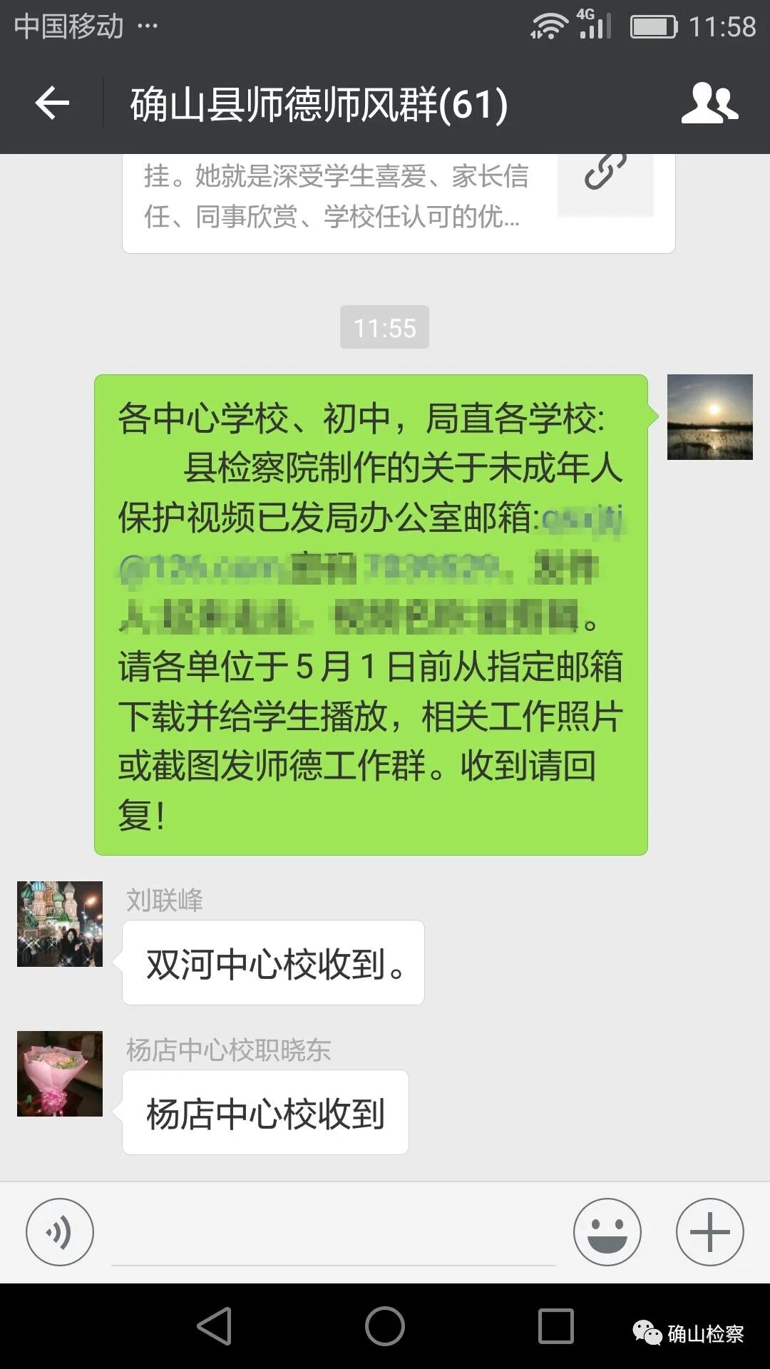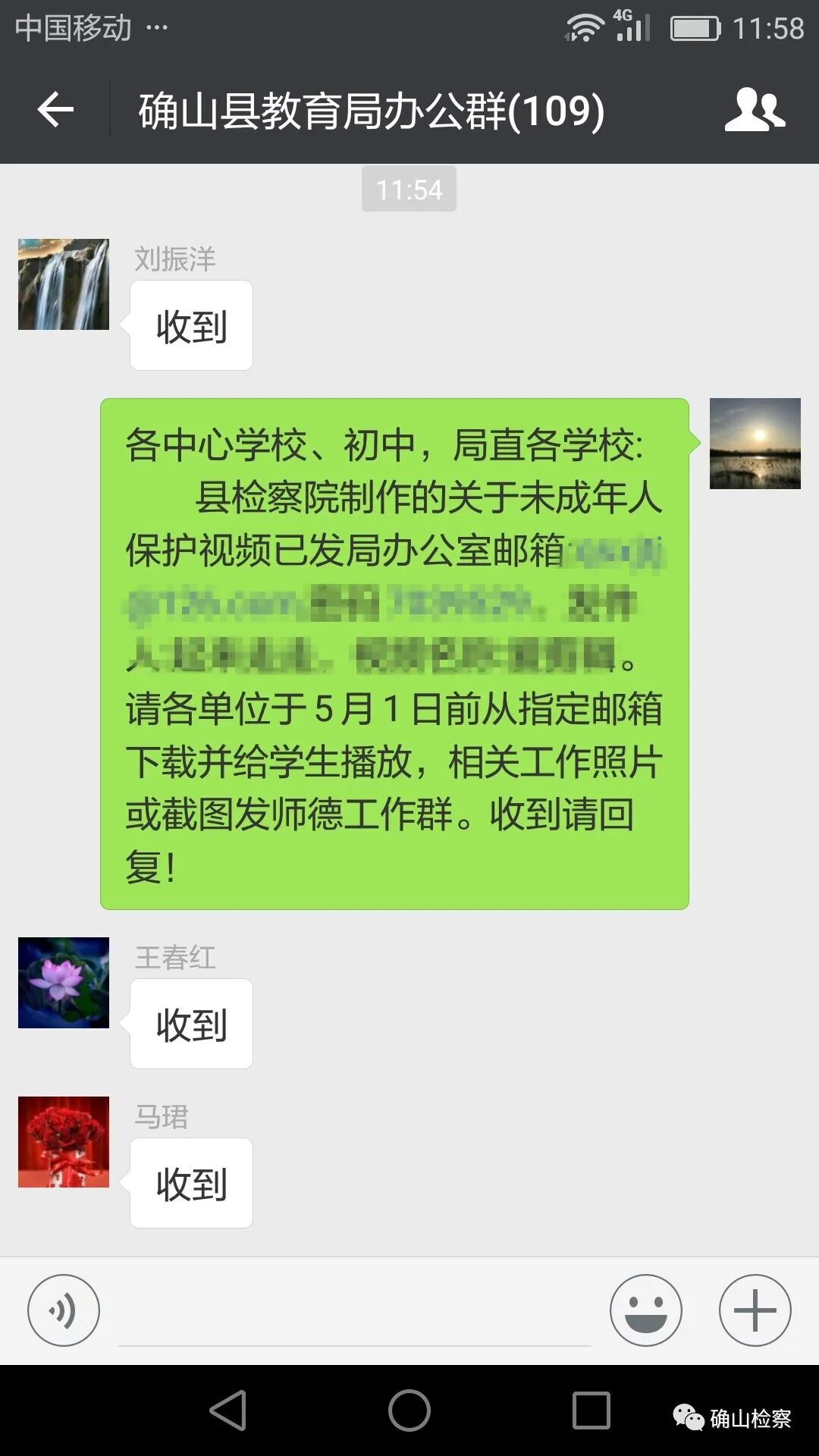为帮助青少年在接触使用网络的过程中安全使用网络,近日,确山县检察院录制了《助力疫情“阻”战 远离网络风险》法治教育网课,以电子邮件形式发送至确山县教体局办公室邮箱,该局要求全县各中心学校、初中,局直各学校下载并给同学们播放。