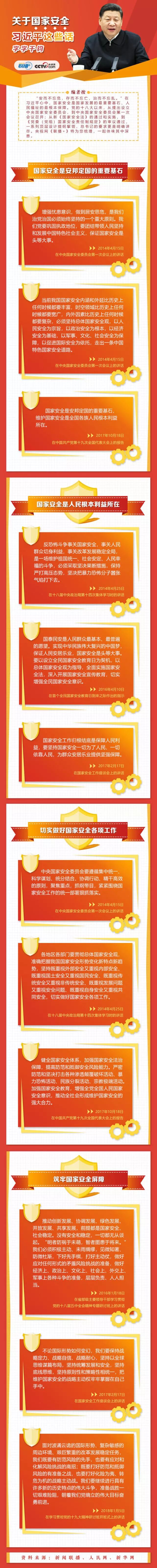 当今世界,安全的内涵和外延更加丰富,时空领域更加宽广,各种因素更加错综复杂。在第四个全民国家安全教育日之际,回顾习近平在不同场合就国家安全发表的一系列讲话,更能体会到:实现中华民族伟大复兴的中国梦,保证人民安居乐业,国家安全是头等大事。