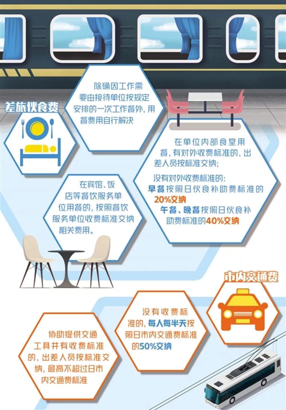 今年7月份,财政部等三部门发文规范中央级差旅费管理,要求中央单位出差人员自行解决相关费用、主动交纳,也要求接待单位按规定收取费用,不得拒收。各地要结合本地区实际,制定本地区出差人员差旅伙食费和市内交通费收交管理规定。