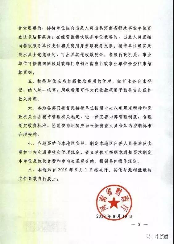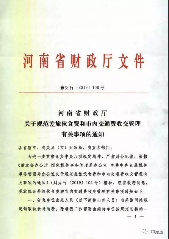 为进一步贯彻落实中央八项规定精神,严肃财经纪律,根据中央有关精神,结合我省实际,报经省政府同意,省财政厅印发通知,对我省差旅伙食费和市内交通费收交行为进行规范,自2019年9月1日起施行。
