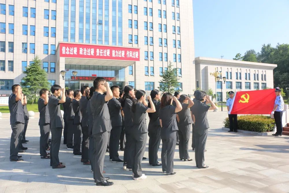 升国旗仪式结束后,在院党组书记、院长秦昆的领宣下,全体党员面对党旗,高举右拳,重温入党誓词:“我志愿加入中国共产党,拥护党的纲领,遵守党的章程,履行党员义务,执行党的决定,严守党的纪律,保守党的秘密,对党忠诚,积极工作,为共产主义奋斗终身,随时准备为党和人民牺牲一切,永不叛党”,誓言高亢嘹亮,表达了每一位干警对党忠诚、甘于奉献、司法为民的心声。