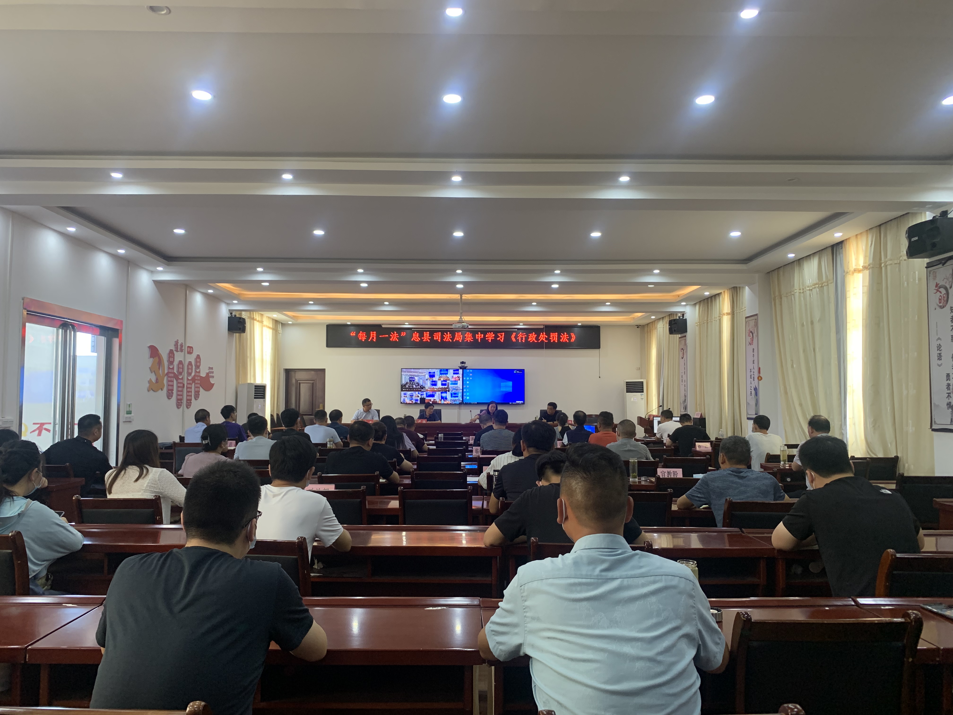为推动新修订的《行政处罚法》贯彻落实,进一步增强全县司法行政队伍的依法行政意识,提升执法监督水平,使司法局工作更加规范化、法治化。7月18日下午,息县司法局组织全体党员干部集中学习《中华人民共和国行政处罚法》。会议由局党组书记、局长张涛主持。