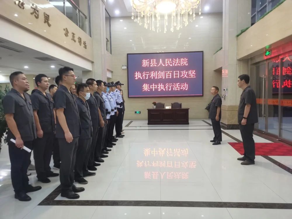 9月7日,新县法院组织开展第一次“执行利剑、百日攻坚”专项集中执行活动。