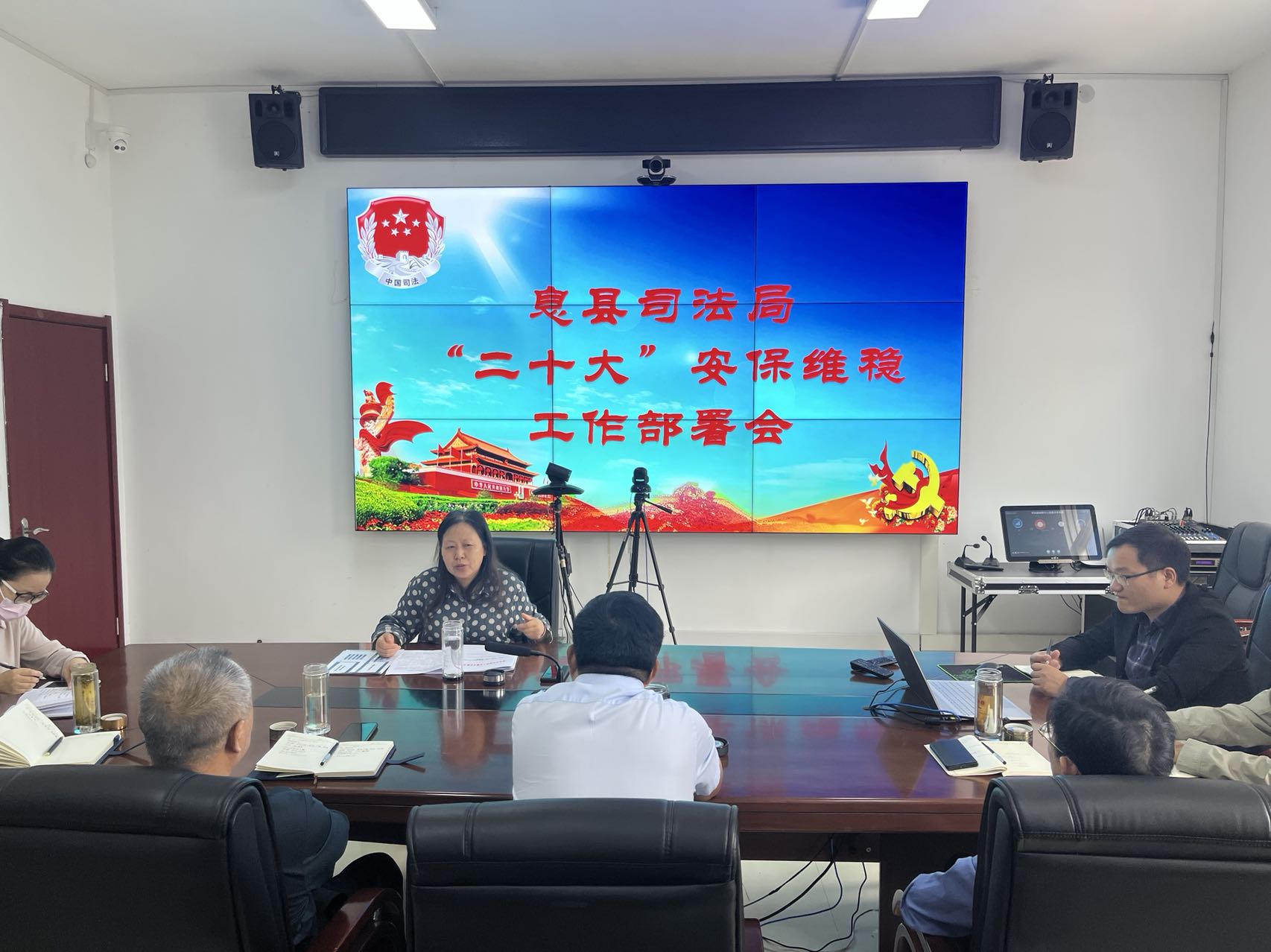 会议学习传达了全县做好二十大维稳安保工作部署会的会议精神,要求全局干警要迅速进入战时状态,扎实做好司法行政系统防风险、保安全、护稳定各项工作,为党的二十大胜利召开提供有力的司法服务和保障。