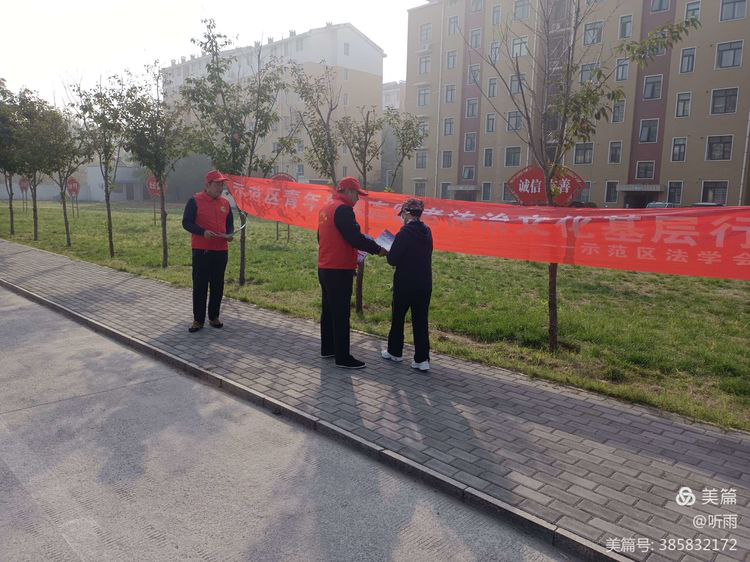 为了提高金耀社区辖区居民的法律意识和知识,提升大家知法、懂法、用法的能力,增强社区群众依法维权的法律意识,工作人员在辖区内开展了“示范区青年普法志愿者法治文化基层行活动”