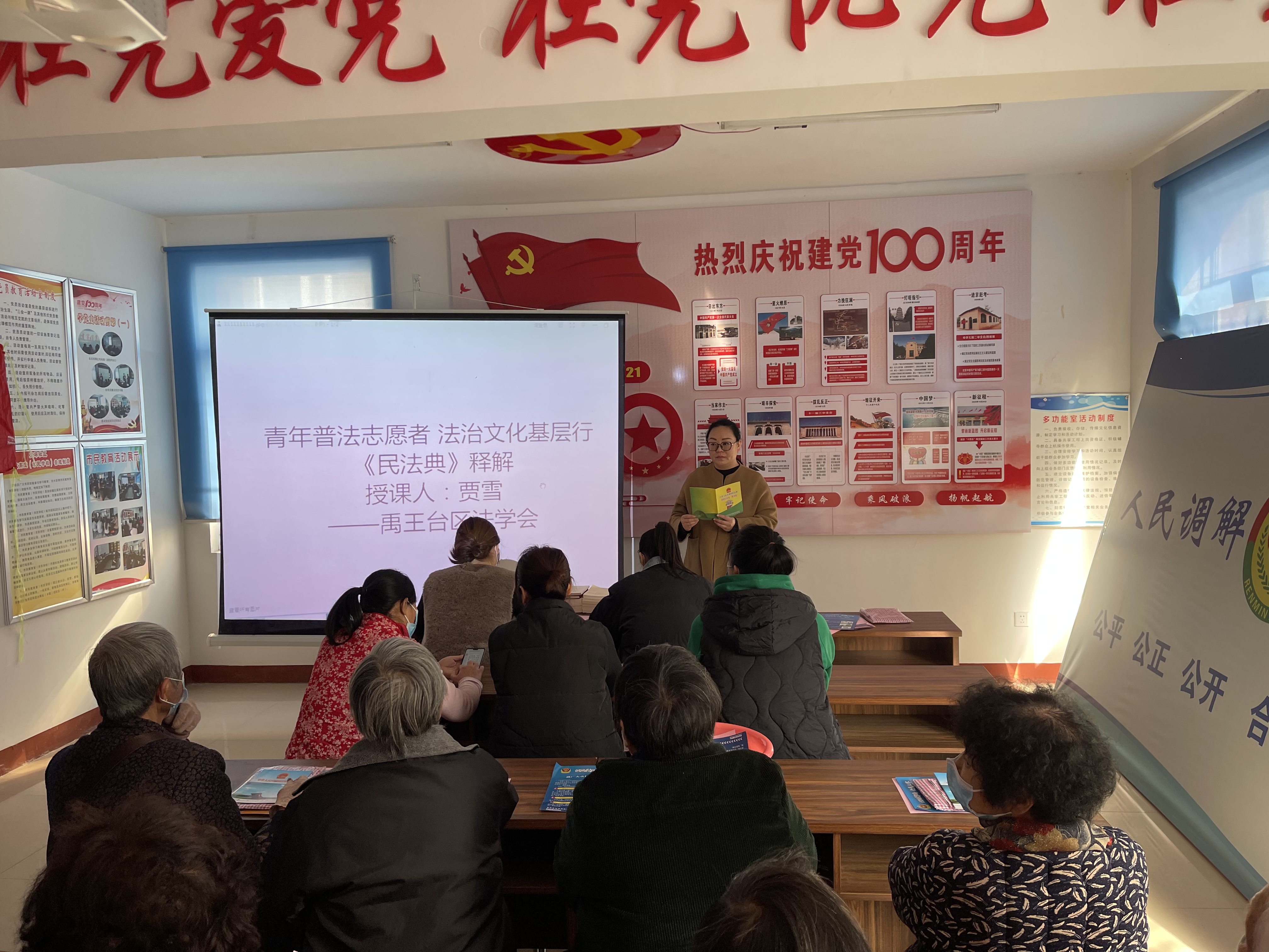 活动现场,普法志愿者和社区网格员悬挂横幅、向社区群众发放《宪法》《民法典》《防范电信网络诈骗手册》《反邪教》等宣传手册。