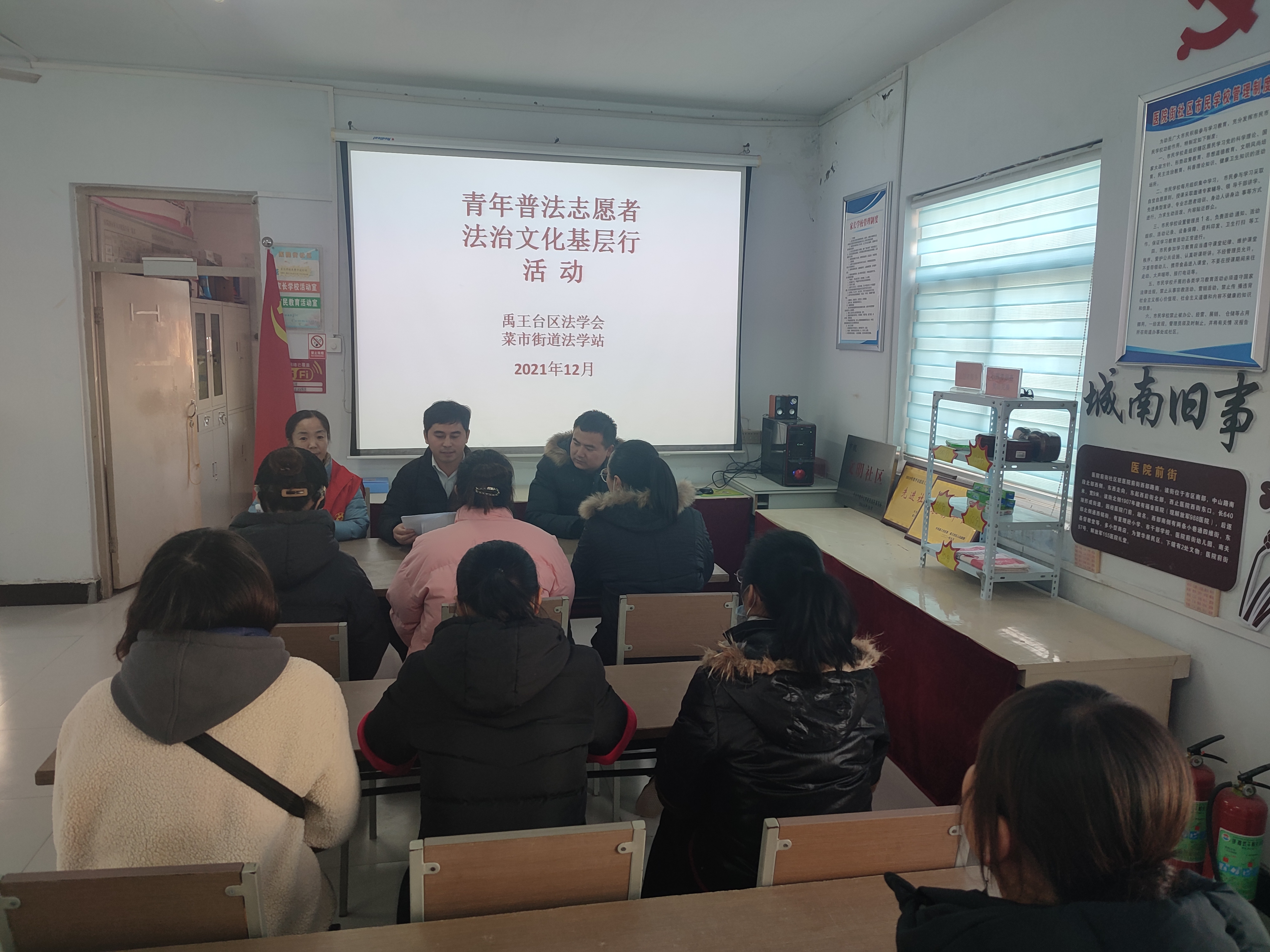 为大力弘扬法治精神、普及法治文化,宣传法治工作,推动“青年普法志愿者法治文化基层行”活动深入开展,提升社区党员干部承担社会责任、履行普法义务和服务基层群众的能力和水平,12月1日下午,菜市街道工作站诚挚邀请区法律服务中心 河南冠源律师事务所郎军昊律师在医院街社区开展了一次生动的“送法进社区 普法入民心”为主题的《民法典》普法宣传志愿服务活动。