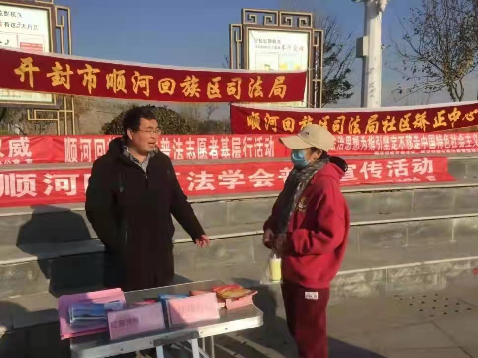 12月4日上午,顺河回族区法学会联合区司法局、团区委、区武装部等20家区直单位和乡、办法学会工作站在古城体育公园开展以“以习近平法治思想为指引 坚定不移走中国特色社会主义法治道路”为主题的“12.4宪法日”集中宣传活动。
